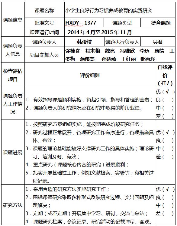 十二五国家级课题“和谐德育深化研究与 推广实验”立项课题中期检查表HXDY~1377