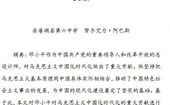 邓小平对马克思主义中国化时代化的重大贡献岳普湖县第六中学 努尔艾力·阿巴斯摘要:邓小平作为中国共产党的重要领导人和改革开
