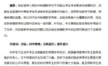 实验在初中物理教学中的应用研究岳普湖县第六中学 努尔艾力·阿巴斯 844400摘要:将实验带入到初中物理教学中不仅能让学