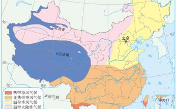 3.中国季风区和非季风区的分布 分界线与大兴安岭、阴山、贺兰山、巴颜喀拉山、冈