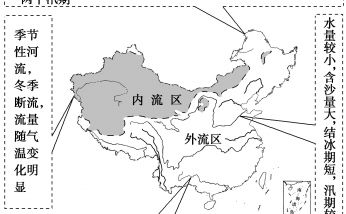 六、中国的河流1.内流区与外流区的分界线北段大体沿着大兴安岭—阴山—贺兰山—祁连山(东端)一线,南段比较接近200mm的