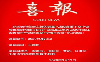 孙琍老师负责主持的课题“战疫背景下空中读写教室的构建与研究”经浙江省教育科学规划领导小组办公室组织专家初评、复评,被批准