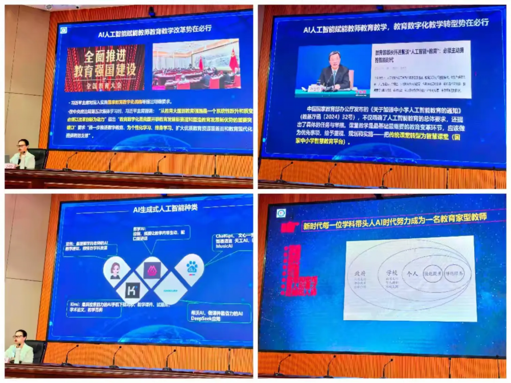 以及结合时代背景,如新时代祖国需要四有好老师、大力弘扬教育家精神、AI人工智能赋能教师教育教学改革势在必行,从而呼吁新时代每一位学科带头人在AI时代要努力成为一名教育家型教师。