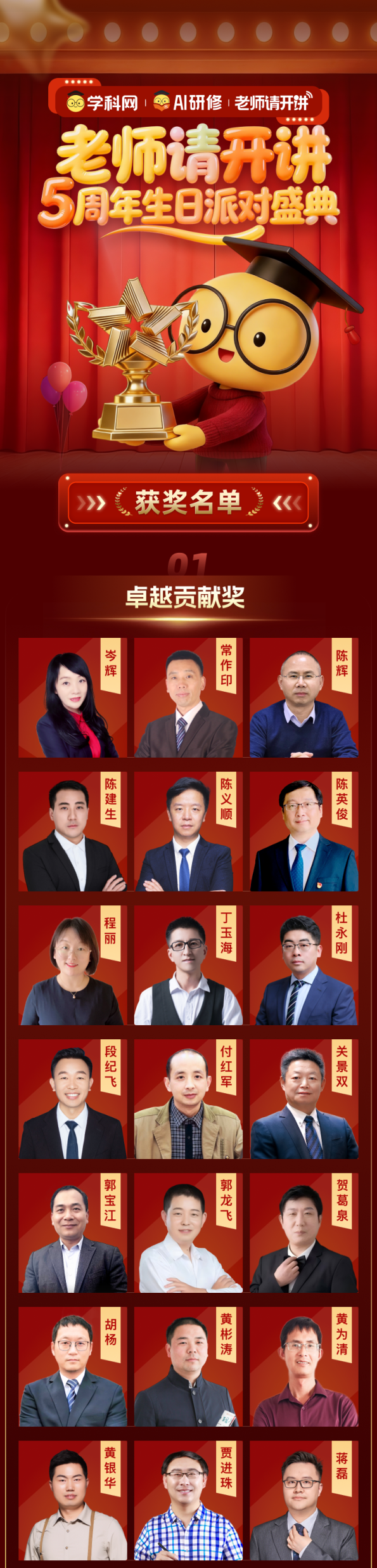 2026年1月22日晚,在学科网举办的“老师请开奖”5周年生日派对盛典活动中公布了教育部金小玲快乐英语名师工作室入选“中国基础教育名师工作室领航联盟”成员单位、主持人金小玲老师荣获“卓越贡献奖。这份双重荣誉,是对工作室多年来坚守教育初心、深耕快乐英语教学理念的高度认可,更是对团队砥砺前行、追求卓越的莫大激励。