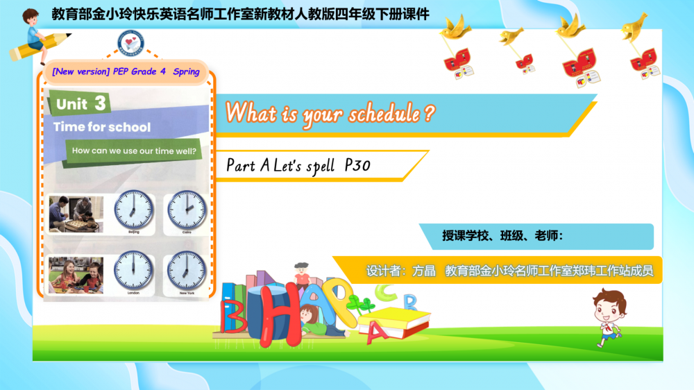 本期我们将推出由温小娟、李睿团队方晶老师精心打磨的Unit 3 Time for school希沃教学课件。让我们携手共进,一同探索英语教学的无限可能!期待与您共同成长,让英语课堂绽放更多精彩。