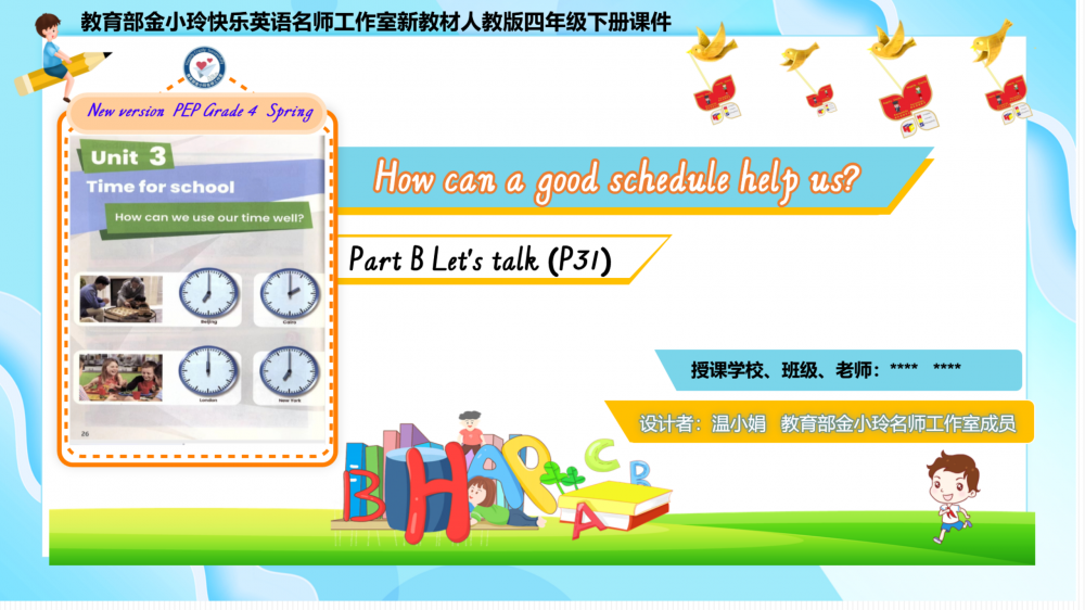 本期我们将推出由温小娟、李睿团队温小娟老师精心打磨的Unit 3 Time for school希沃教学课件。让我们携手共进,一同探索英语教学的无限可能!期待与您共同成长,让英语课堂绽放更多精彩。