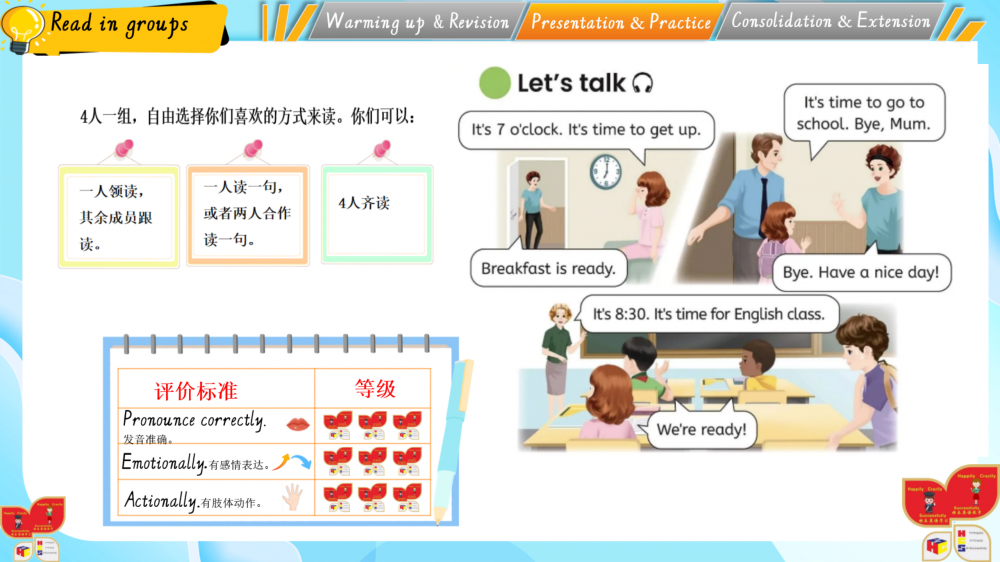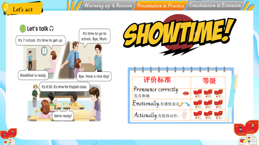 1. 以情境为基,通过动画、互动游戏还原生活场景(如家务劳动等),落实新课标“真实语境中学习语言”的要求;