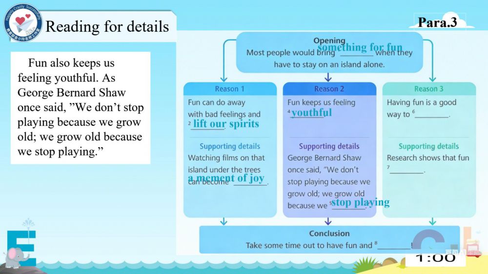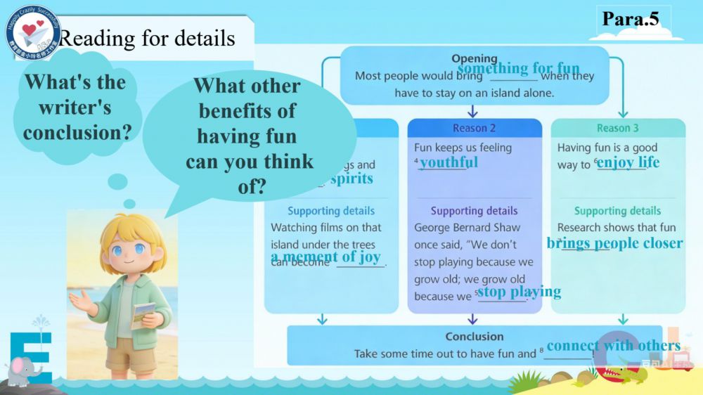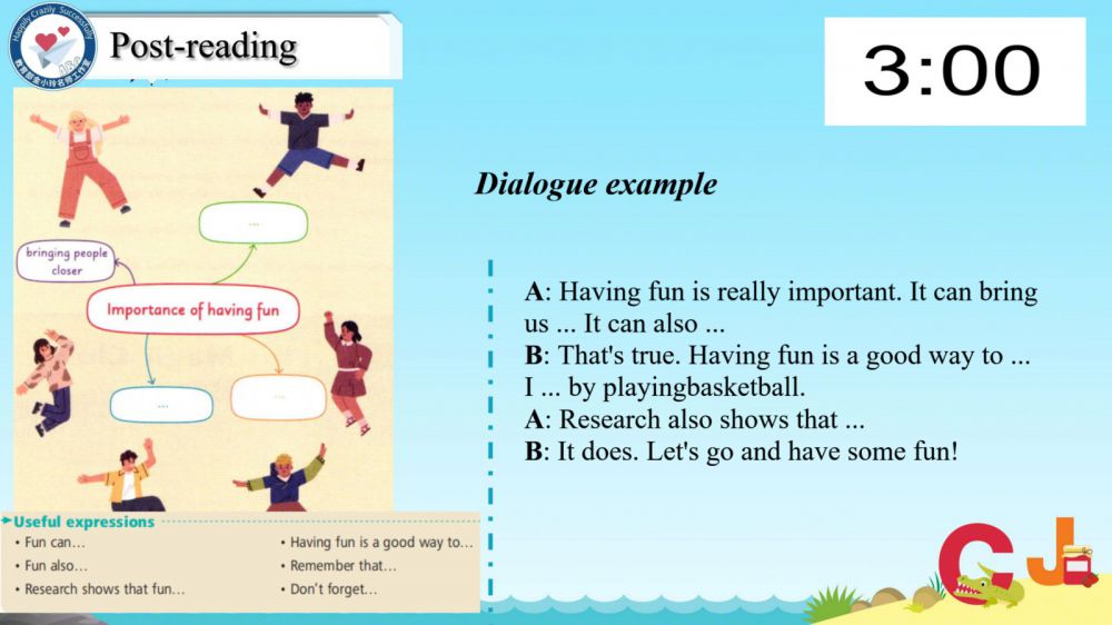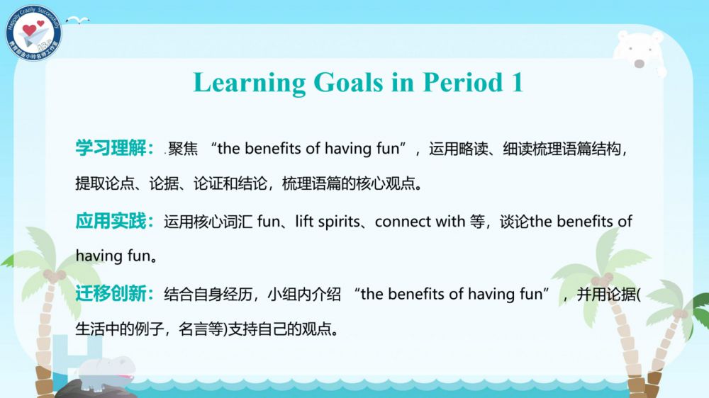 本期我们将推出由崔根萍、庄楠楠团队宋梦颖老师精心打磨的Unit 4 The art of having fun Period 1(Reading)希沃教学课件。让我们携手共进,一同探索英语教学的无限可能!期待与您共同成长,让英语课堂绽放更多精彩!