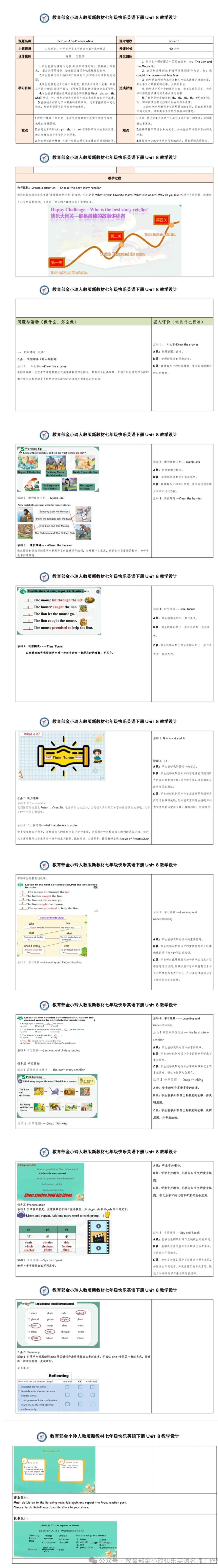 亲爱的各位老师: 您好!欢迎你们来到教育部金小玲名师工作室。寒假期间,教育部金小玲名师工作室新教材资源开发项目正如火如荼地进行着。我们工作室团队汇聚了正高级教师、特级教师、各级教研员、省学科带头人以及一线骨干教师等专业力量齐聚云端,全身心投入到人教版新教材七年级下册原创教学设计开发活动中。教师们深入研读人教版新教材,精准定位教学目标,融入AI技术赋能课堂,精心打造趣味游戏、情景模拟等多样活动,致力于让教与学都充满乐趣。历经不懈的努力,凝聚众人智慧的快乐英语系列教学设计完成,希望能助力广大一线教师备课,提升英语教学质量。 本期推出的优秀教学设计模板是由教育部金小玲名师工作室王小军工作站团队的许霞和万里琪老师带来的新教材人教版七年级下册快乐英语Unit 8 Section A (1a-pronunciation) 教学设计。
