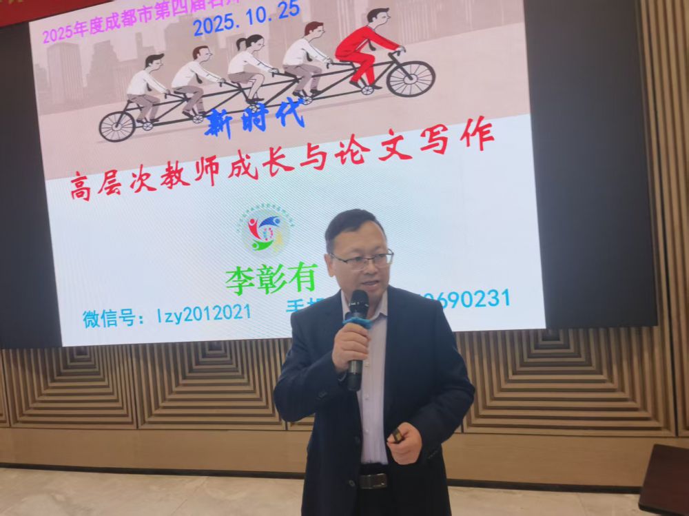 2025年10月25日,2025年度成都市教师素质提升第四届工作室异地高端研修班在上海举行。李彰有应邀为成都市名师工作室领衔人30人开设了《新时代高层次教师成长的观念与论文写作》的培训讲座。李老师作为工作室主持人的导师,下午指导名师工作室三年规划的制定。他指出制定规划必须厘清几个问题:名师工作室规划与工作室建设是什么关系,名师工作室规划和工作室成员自我规划是什么关系,制定名师工作室规划需要注意哪些问题,您的名师工作室规划的亮点是什么,您主持的名师工作室有徽标吗,它和工作室规划是什么关系。