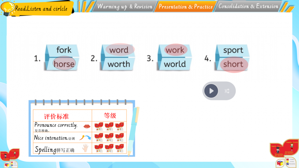 1. 以情境为基,通过动画、互动游戏还原生活场景(如家务劳动等),落实新课标“真实语境中学习语言”的要求;