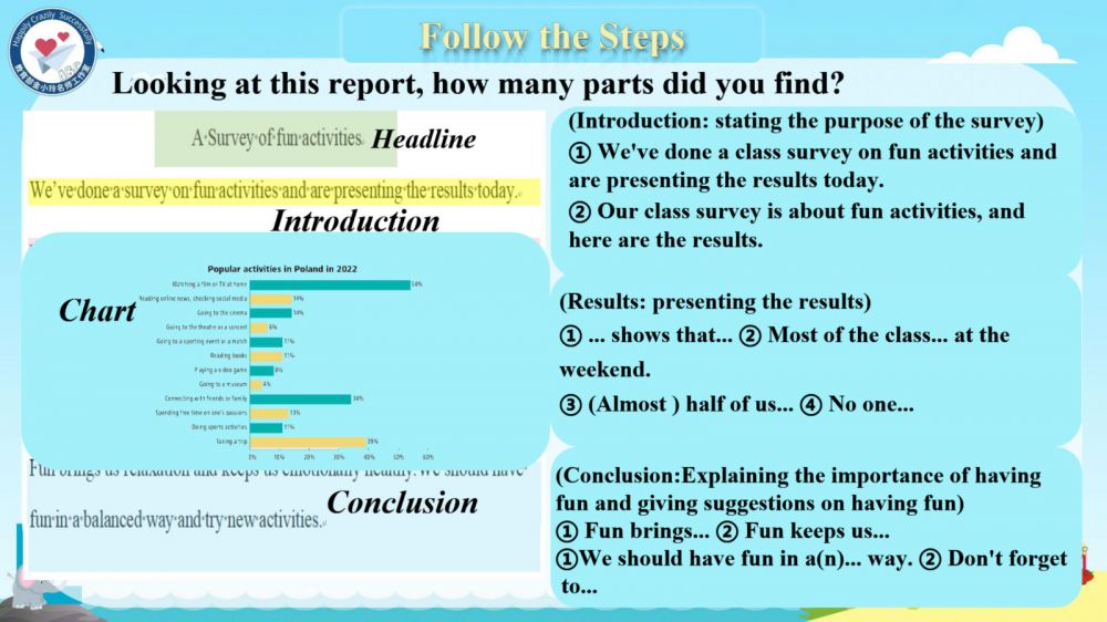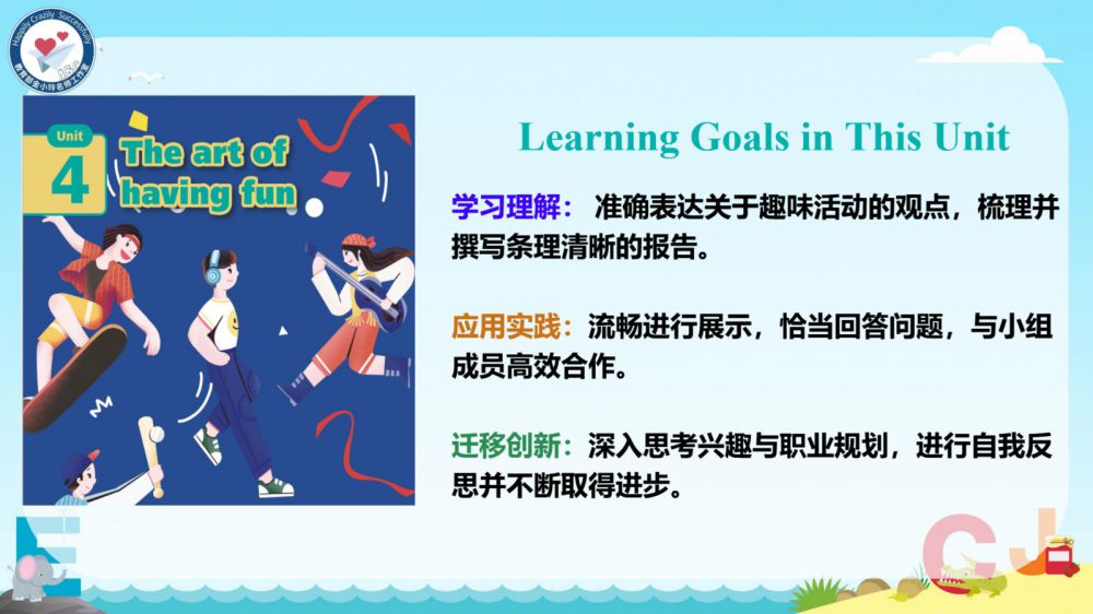 本期我们将推出由崔根萍、庄楠楠团队曹晶老师精心打磨的Unit 4 The art of having fun Period 6 (Presenting ideas & Reflection) 希沃教学课件。让我们携手共进,一同探索英语教学的无限可能!期待与您共同成长,让英语课堂绽放更多精彩!